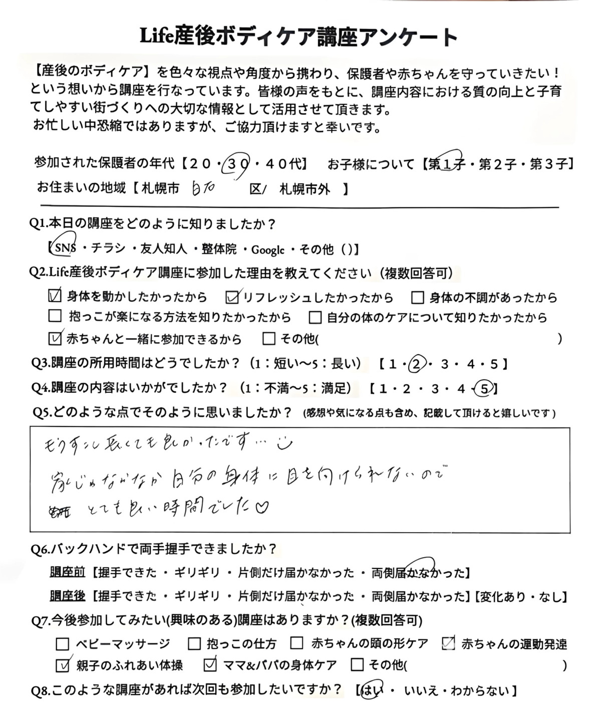 この度は【産後ボディケア講座〜腰痛リセット〜】にご参加いただき、誠にありがとうございました!