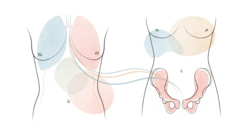 横隔膜と骨盤底筋は、まるで上下で呼吸を支え合う「チーム」のような関係にあります。