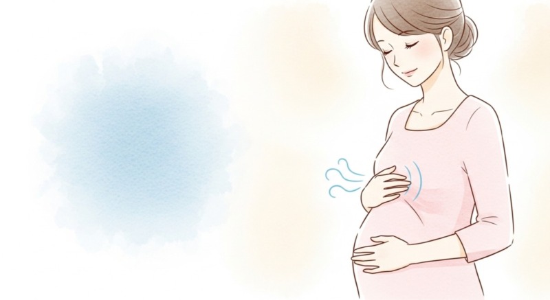 妊娠中、お腹の赤ちゃんが大きくなるにつれて、内臓が上方へ押し上げられ、横隔膜も一緒に引き上げられます。横隔膜は、肺の下にある「呼吸の主役となる筋肉」で、吸うときに下がり、吐くときに上がります。