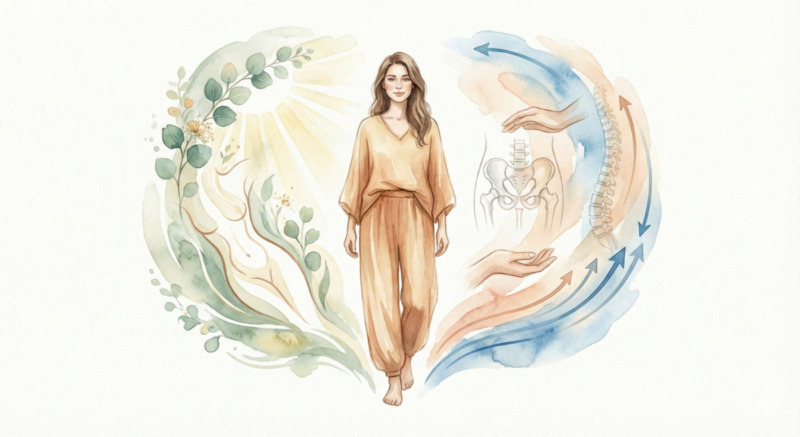 整体やオステオパシーでは、骨盤を閉じるのではなく整えることを大切にしています。骨盤・横隔膜・内臓・筋膜をバランスよく調整することで、体が自分の力で回復していく環境を整えます。